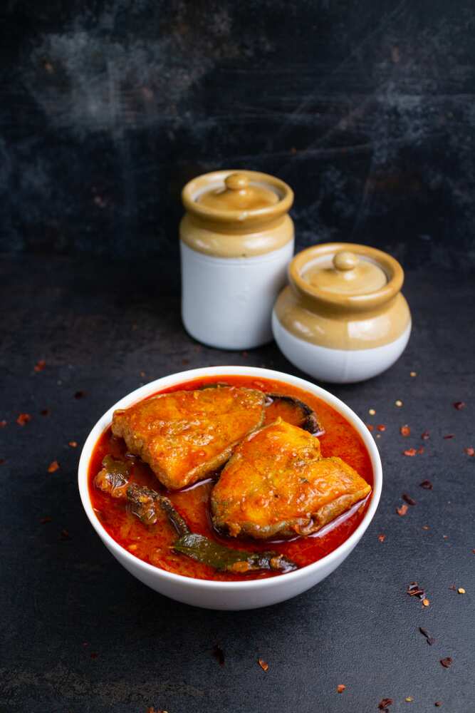 Kerala-style fish curry, known for its rich, tangy, and spicy flavours, is made with fresh fish, coconut milk, and a blend of aromatic spices. This traditional curry is often cooked in clay pots, enhancing its depth of flavour, and is best enjoyed with steamed rice.