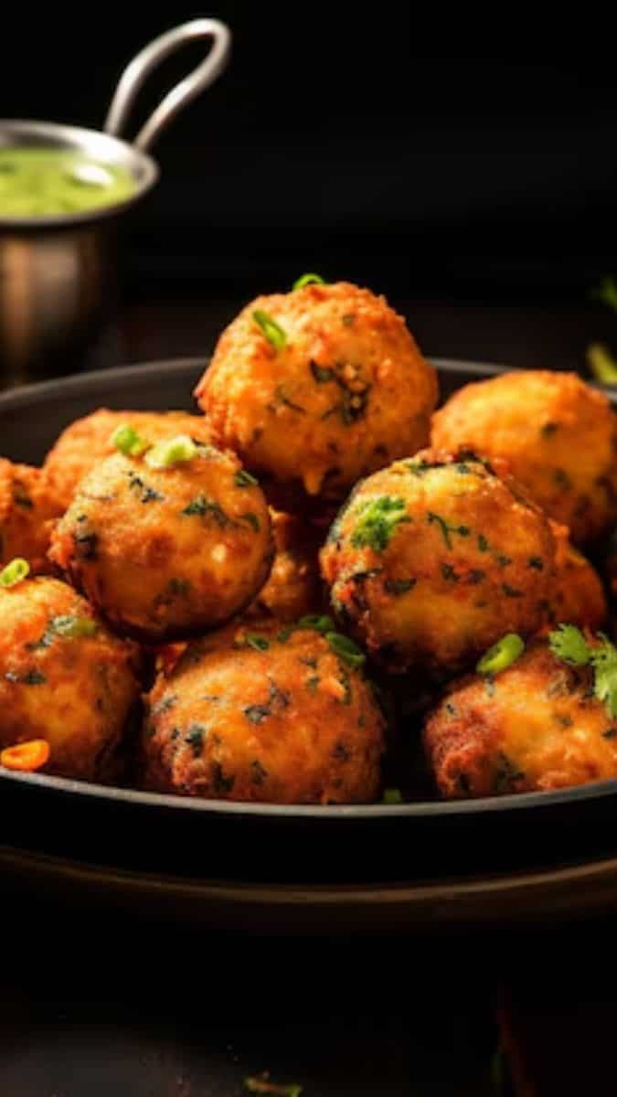 Heat some oil and deep fry small portions of the batter. Air fry to make them healthier.