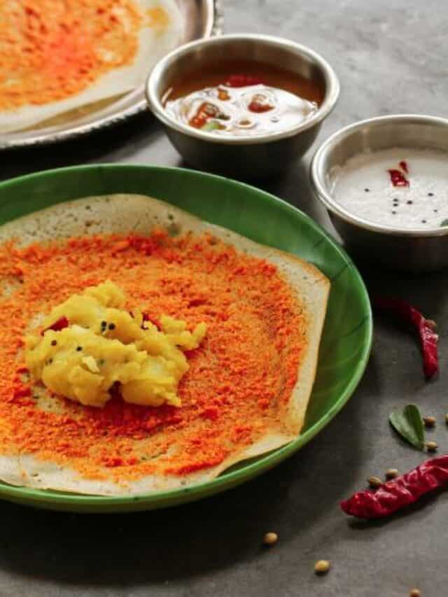 For dosa batter: 2 cups parboiled rice ½ cup urad dal 2 tbsp poha ½ tsp methi seeds Salt to taste For red chutney (spicy paste): 4-5 dried red chillies 2 garlic cloves 1 tbsp roasted chana dal 1 tbsp grated coconut 1 tsp tamarind paste Salt as needed