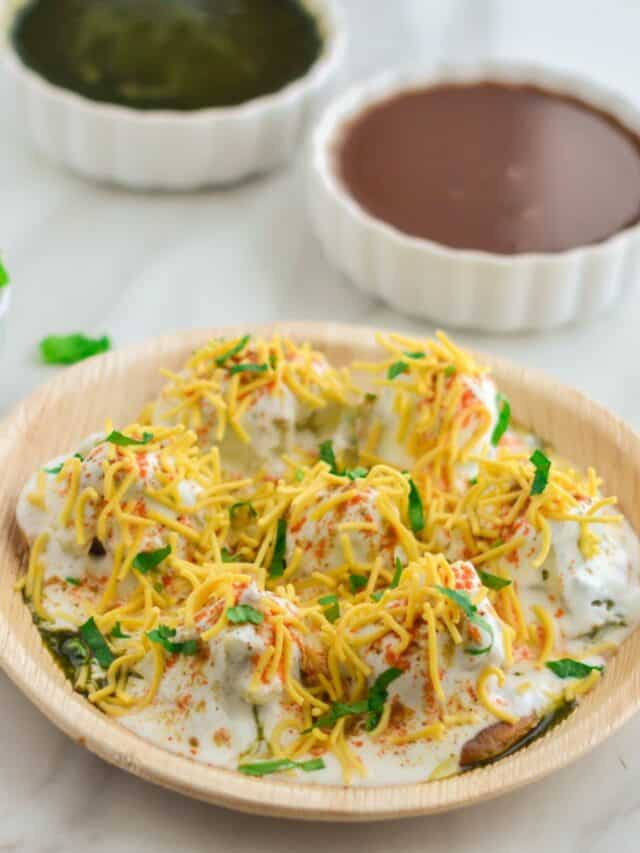 Garnish with sev, coriander leaves, and pomegranate seeds for a burst of flavour and colour.