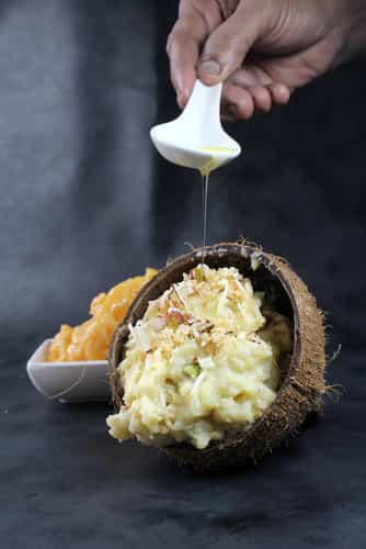 Sweet Pongal is a South Indian dish that is cooked to celebrate the harvest festival. Prepared with rice, moong dal, jaggery, and ghee, it is rich and fragrant.