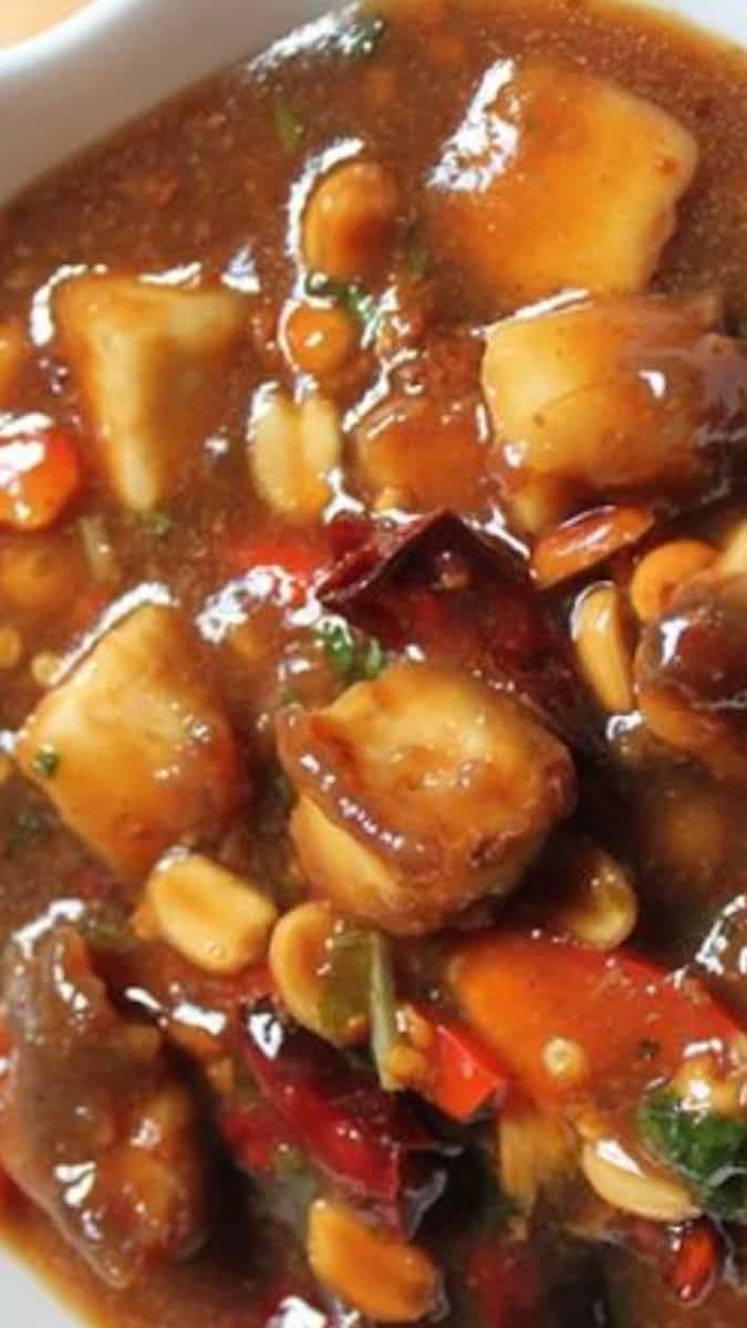 40 grams mixed bell pepper 60 grams of kung pao sauce 180 grams paneer 10 grams cashew nut Salt to taste 10 grams of spring onion ½ cup roasted peanuts 2 green onions, sliced 2 dried red chillies, deseeded and chopped 2 cloves of garlic, minced 1-inch piece of ginger, minced 1 tablespoon cornstarch 1 tablespoon soy sauce 1 tablespoon hoisin sauce 1 tablespoon Chinese black vinegar 1 tablespoon vegetable oil Salt, to taste