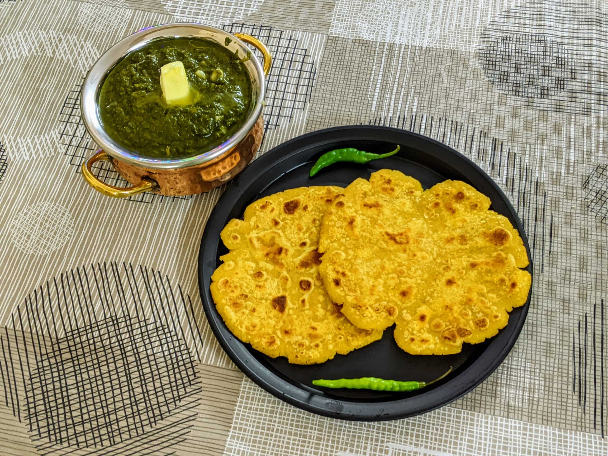 Makki di roti is a traditional Punjabi flatbread made with maize flour. It has a rustic, earthy flavour and pairs best with sarson da saag. Because the dough is delicate, the rotis are shaped by hand rather than rolled.