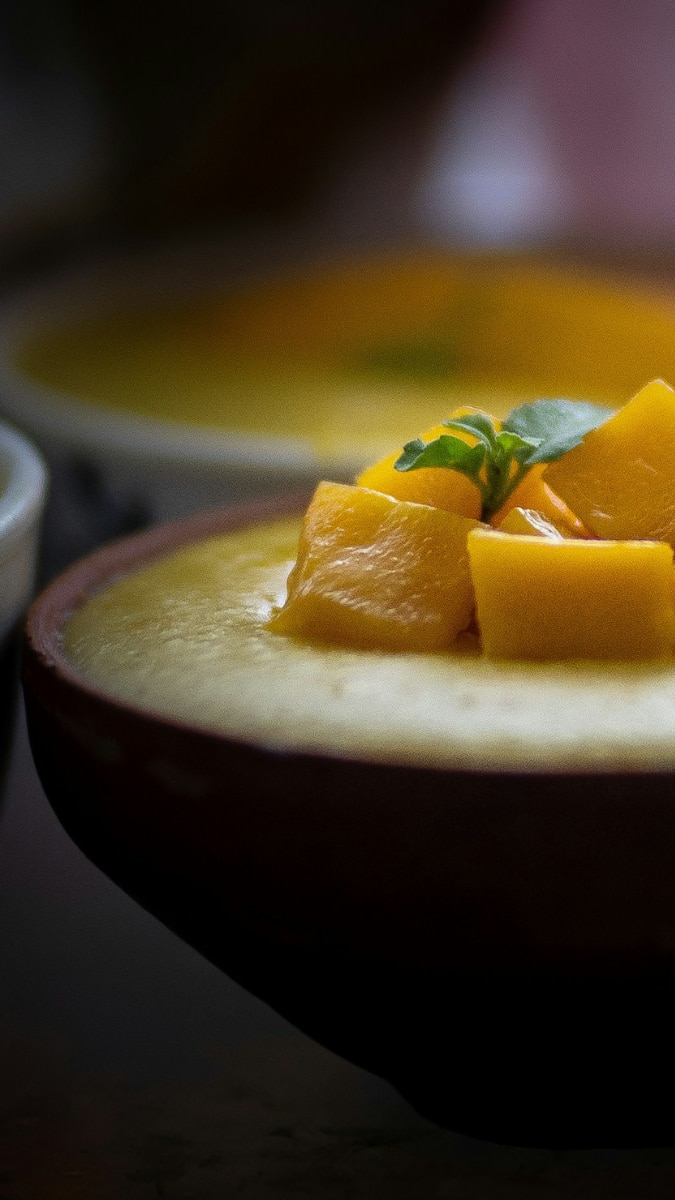 Take ripe, sweet mangoes and extract the smooth pulp.