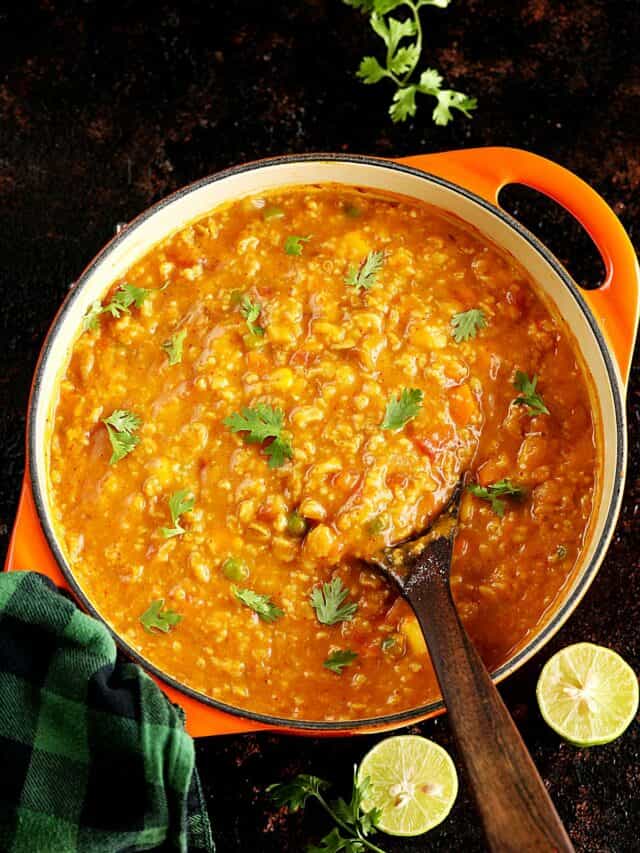 Once thick and cooked through, turn off the heat, garnish with chopped coriander, and serve hot.