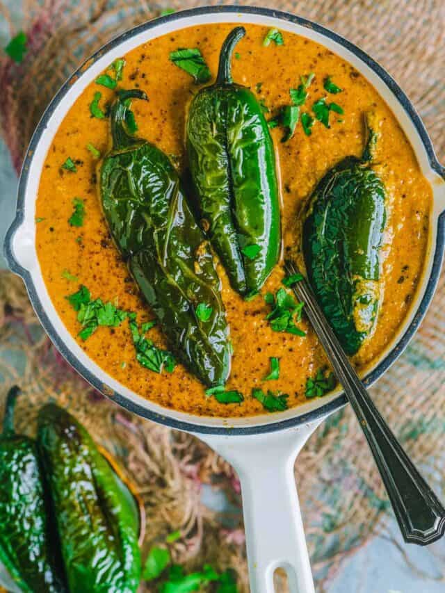 Mirchi ka salan is a classic Hyderabadi dish known for its rich, tangy and mildly spicy flavours. This curry is traditionally served with Hyderabadi biryani and pairs wonderfully with roti.