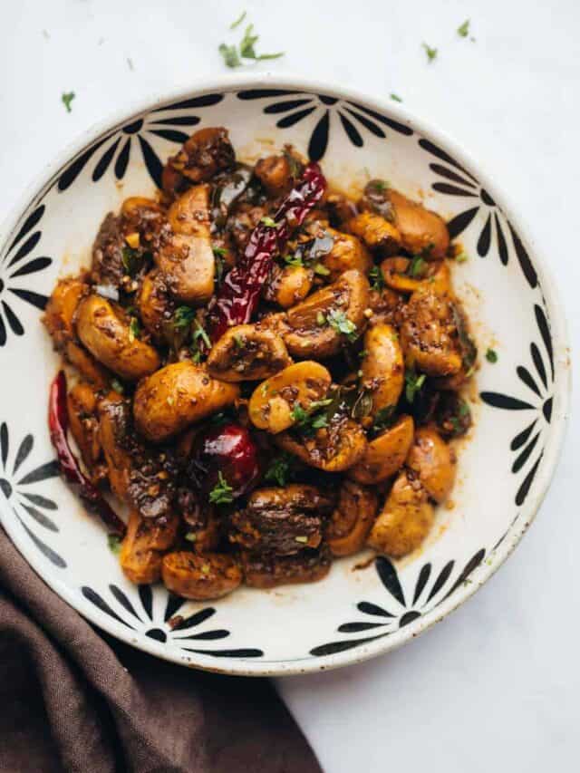 Mushroom Pepper Fry is a quick South Indian-style stir-fry made with mushrooms, onions, crushed black pepper, and curry leaves. It is spicy, aromatic, and pairs well with rice or chapati.