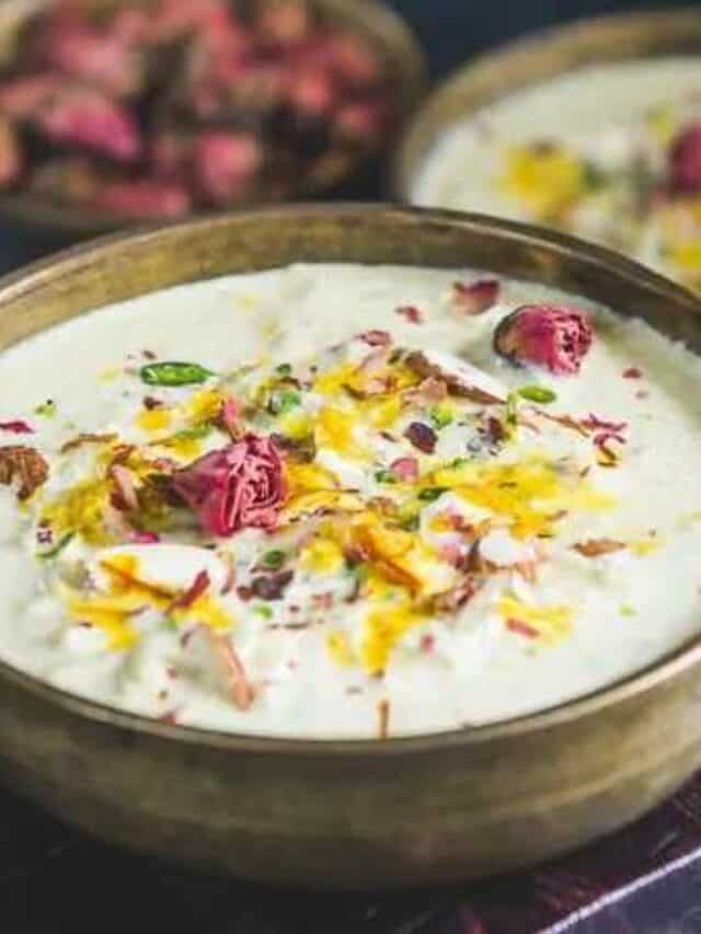 Sitafal kheer, made with custard apple pulp and milk, is a delicious sweet dish offered during Navratri fasting. It is light, creamy, and naturally flavoured.