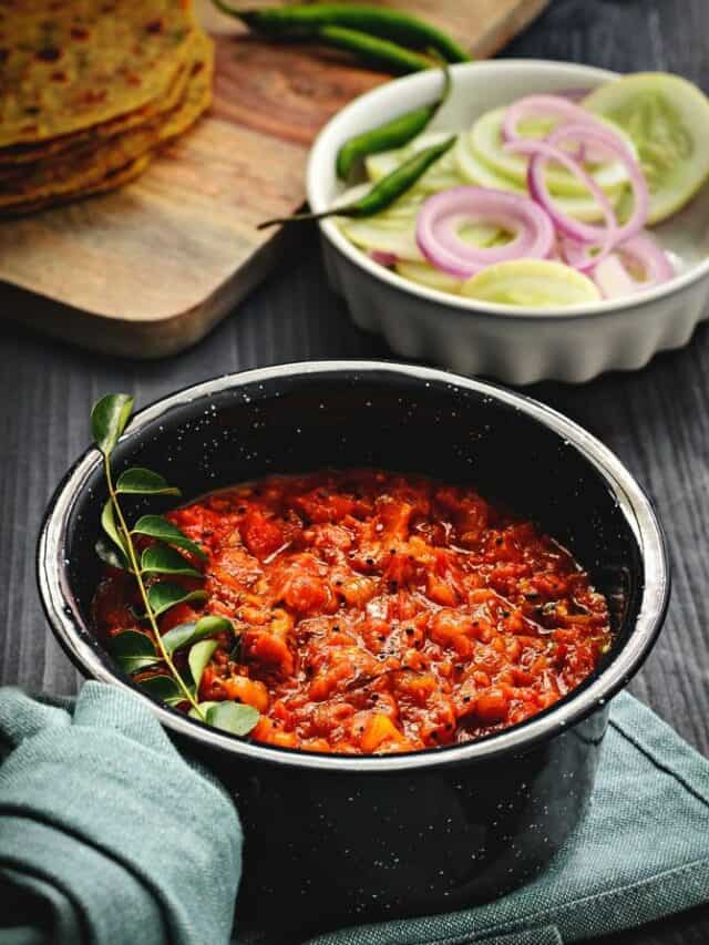 Pyaaz or onion chutney can be made from onions, green chilli, and Punjabi spices.