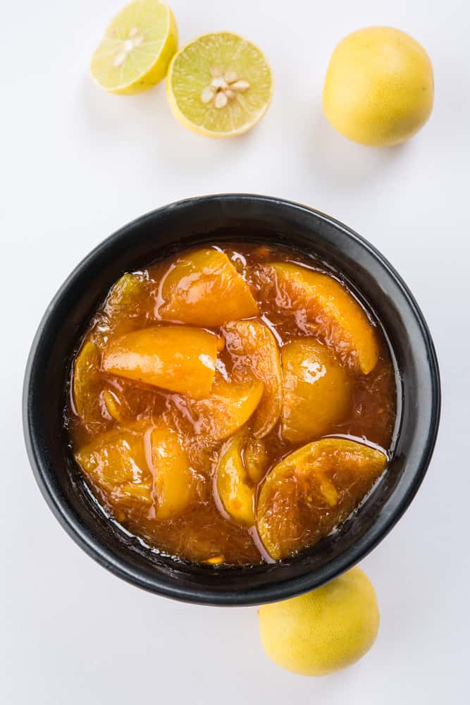 8-10 lemons 1 cup sugar 1 tablespoon black salt ½ tablespoon red chilli powder 1 teaspoon garam masala ½ teaspoon ginger powder ½ teaspoon ajwain Pinch of salt