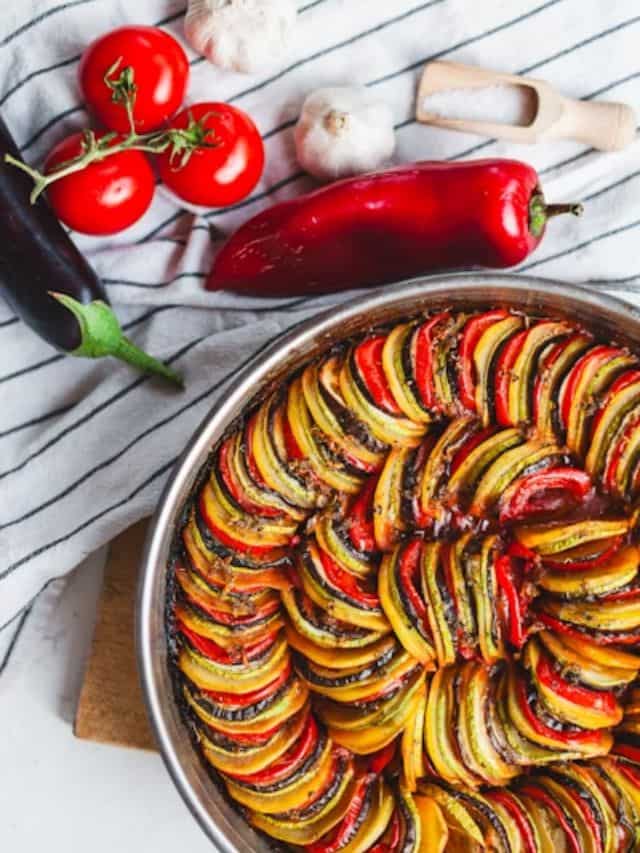 Ratatouille is a vibrant French vegetable stew featuring eggplant, zucchini, bell pepper, and herbs. This colourful, wholesome dish delivers a burst of Mediterranean flavour, perfect with crusty bread or as a healthy side.