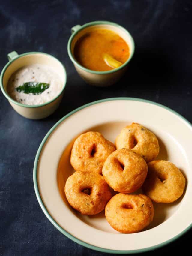 South Indian medu vada is a delightful snack that can be added to the breakfast or snack spread. Accompanied by sambar, coconut chutney, and tomato chutney, it makes a wholesome meal. Journal its recipe.