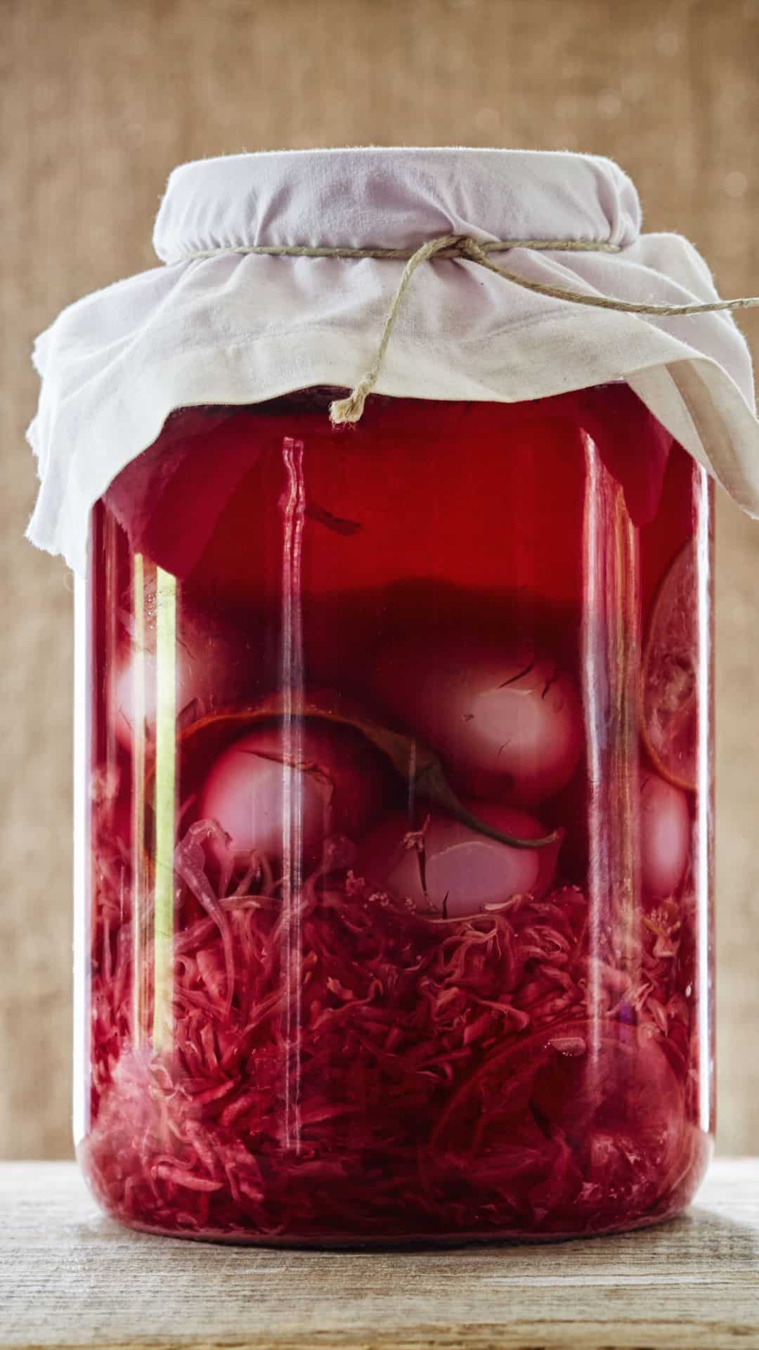 Seal the jar tightly and shake gently so the eggs are fully coated in the vinegar mixture.