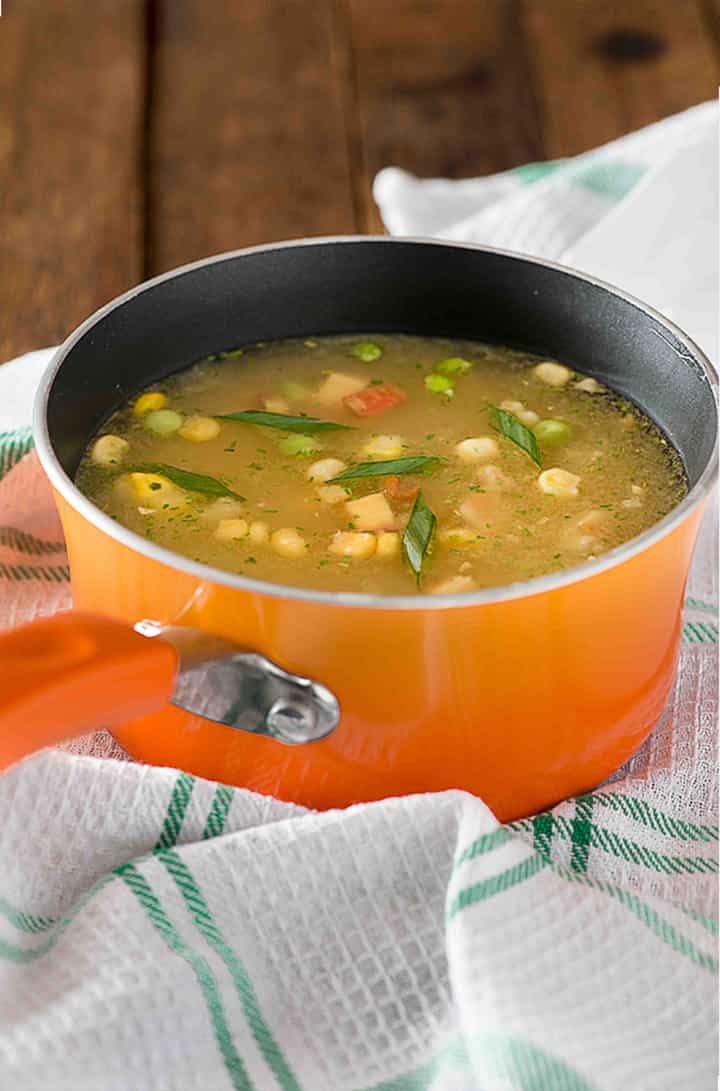 Stir in corn kernels and vegetable broth. Bring to a boil and let the soup simmer.