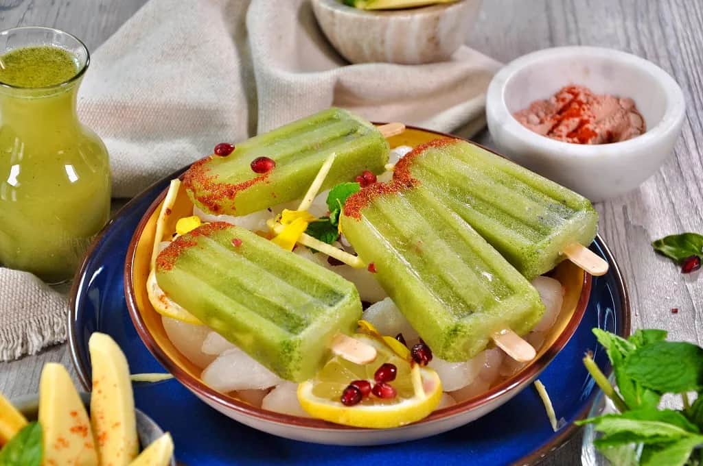 Transforming the traditional Indian Aam Panna into a frozen popsicle is a genius way to enjoy the seasonal benefits of raw mango in a modern format. These ice lollies are a concentrated burst of sweet, sour, and salty flavours, infused with the cooling properties of roasted cumin and fresh mint. Because raw mango is naturally high in pectin and essential electrolytes, these popsicles serve as a functional snack to prevent dehydration and heat exhaustion during the peak of the Indian summer.