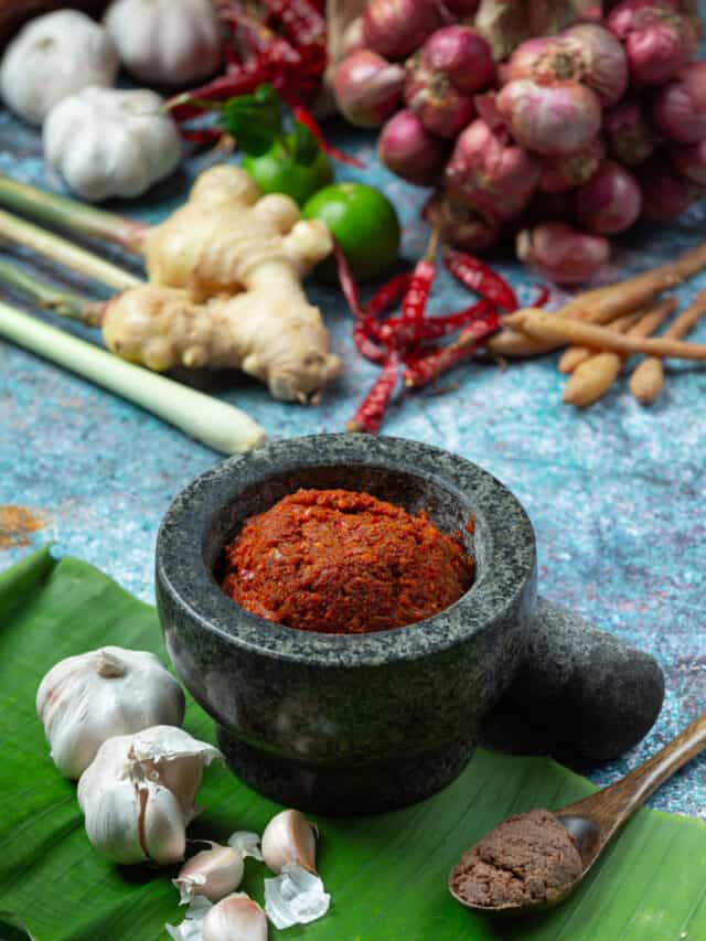 5 dried red chillies (soaked) 1 onion or shallot (chopped) 3 garlic cloves 1 tbsp lemongrass (chopped) 1 tsp ginger or galangal (grated) 1 tsp coriander seeds 1 tbsp oil Salt to taste
