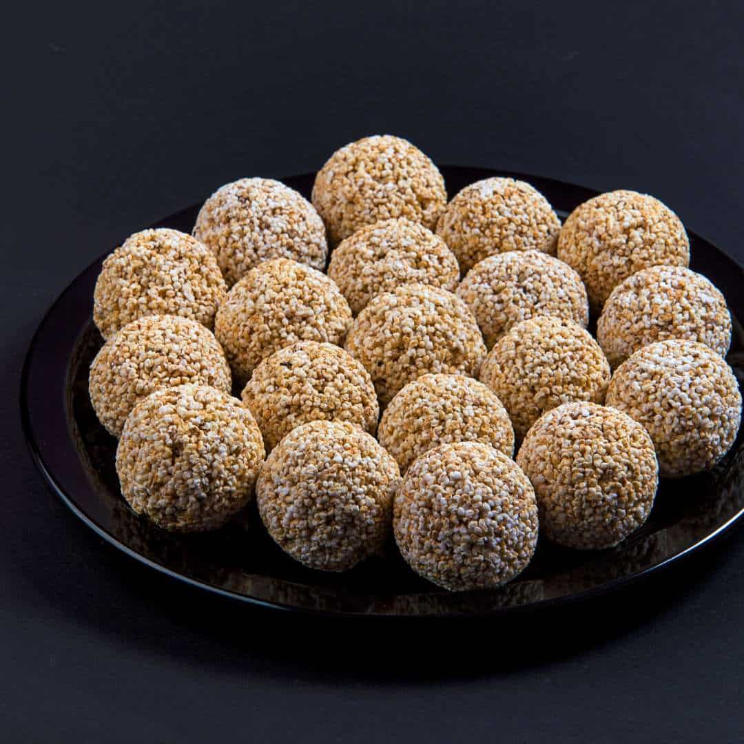 Til Bugga is a traditional Sankranti sweet where roasted sesame is combined with melted jaggery. Soft and nutty, this sweet reflects winter, harvest, and homemade comfort in every bite.