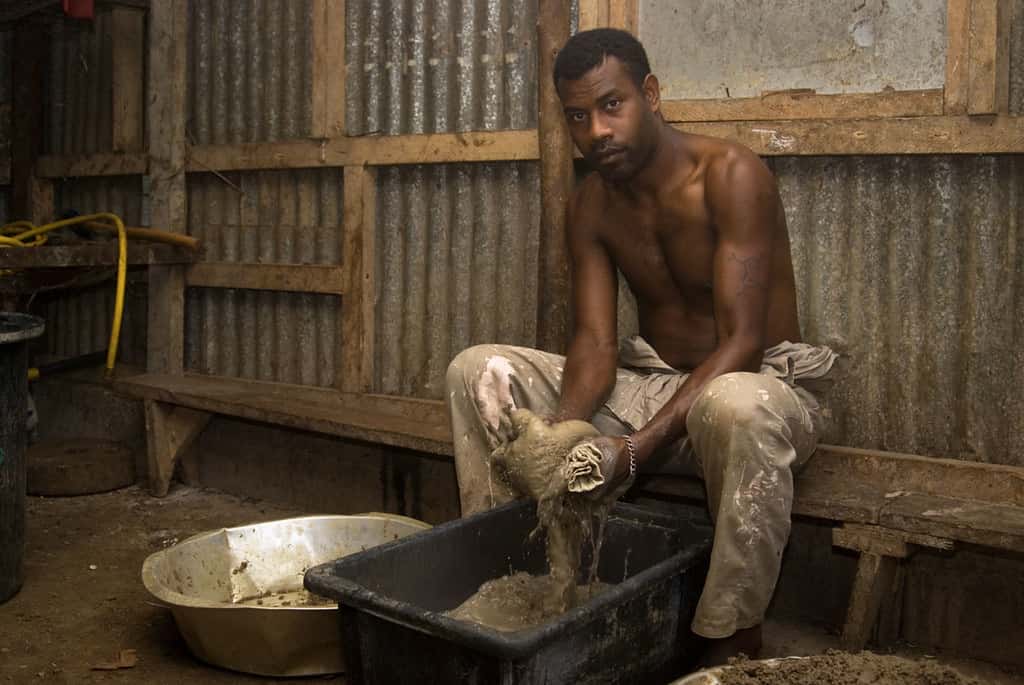 Wash the kava root thoroughly, peel off the outer skin, then cut it into thin slices and sun-dry for several days until completely hard and brittle.