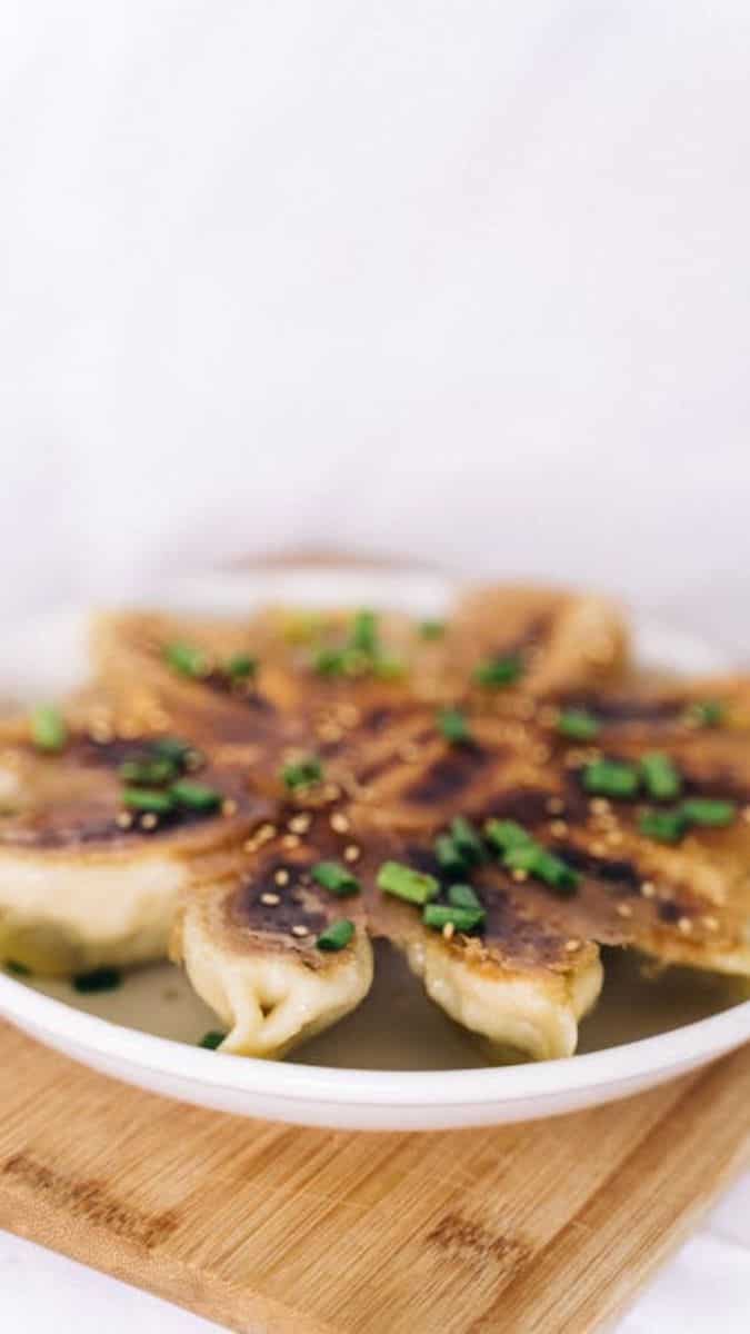 500g of minced meat 1 cup of chopped napa cabbage 3 finely chopped green onions 1 freshly chopped piece of ginger 2 chopped garlic cloves 6 finely chopped mushrooms ½ tsp baking soda 2 tbsp sesame oil 2 tbsp mirin 2 tbsp oyster sauce ¼ cup soy sauce 1 pack of wonton wrappers Green onions, for garnish Chilli oil, for garnish