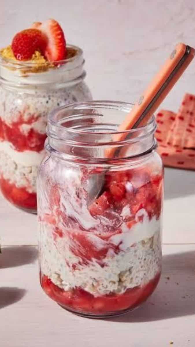 This strawberry cheesecake oatmeal recipe is basically a dessert that you can try early in the morning. The combination and layers give it a divine taste, just like a cheesecake!