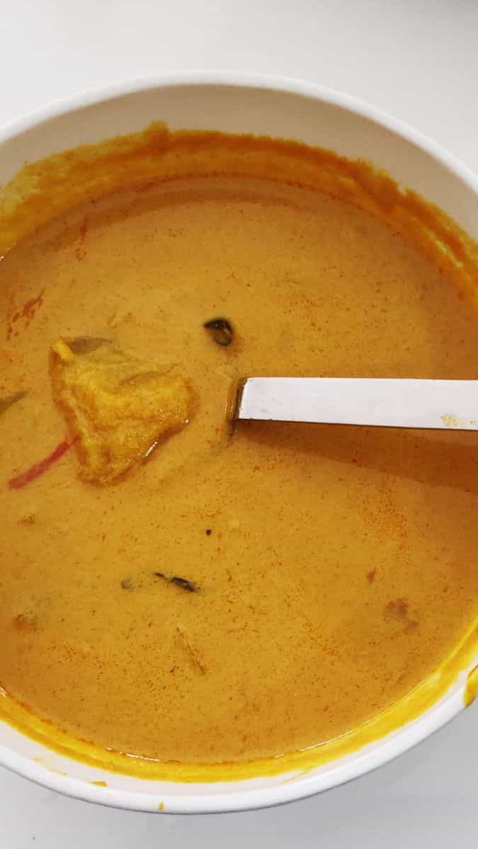 In the summer, mangoes take centre stage for every dish and drink. This mix of mango pulissery chukauni is a creamy, tangy, and subtly sweet recipe for lunch.