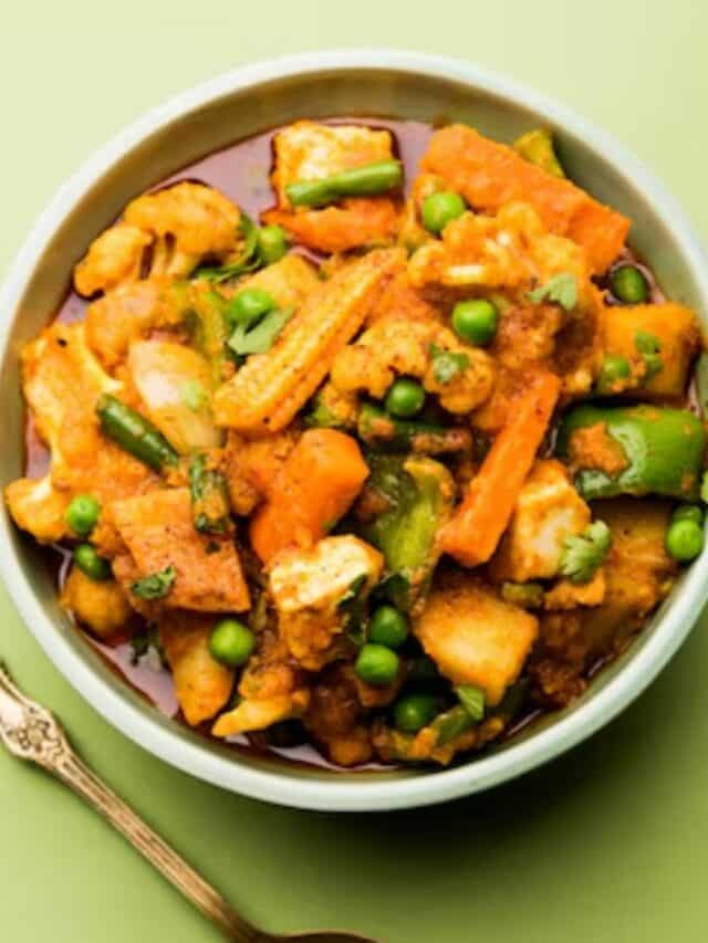 Veg kolhapuri is a bold and spicy Maharashtrian curry made with mixed vegetables simmered in a rich, aromatic gravy. Infused with the fiery flavours of Kolhapuri masala, this dish is known for its deep red colour, robust taste, and rustic charm.