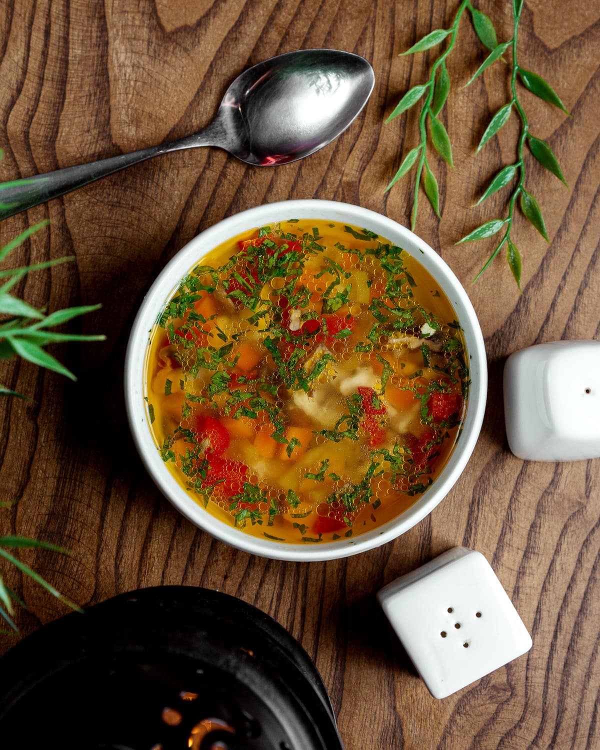 Minestrone is a flexible Italian soup built around vegetables, beans, and a small amount of pasta or rice. Slow simmering allows the flavours to deepen while keeping the soup light and filling.